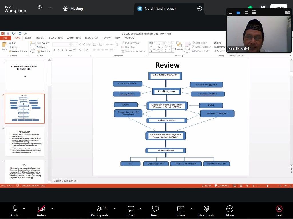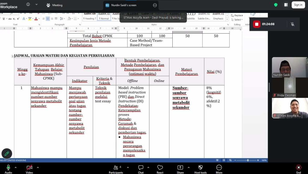 STIKes Assyifa Aceh – STIKes Assyifa Aceh melaksanakan kegiatan Pendampingan Penyusunan Kurikulum Berbasis Outcome Based Education (OBE) bersama Prof. Dr. Nurdin Saidi, M.Si dari Universitas Syiah Kuala (USK) melalui platform Zoom Meeting.